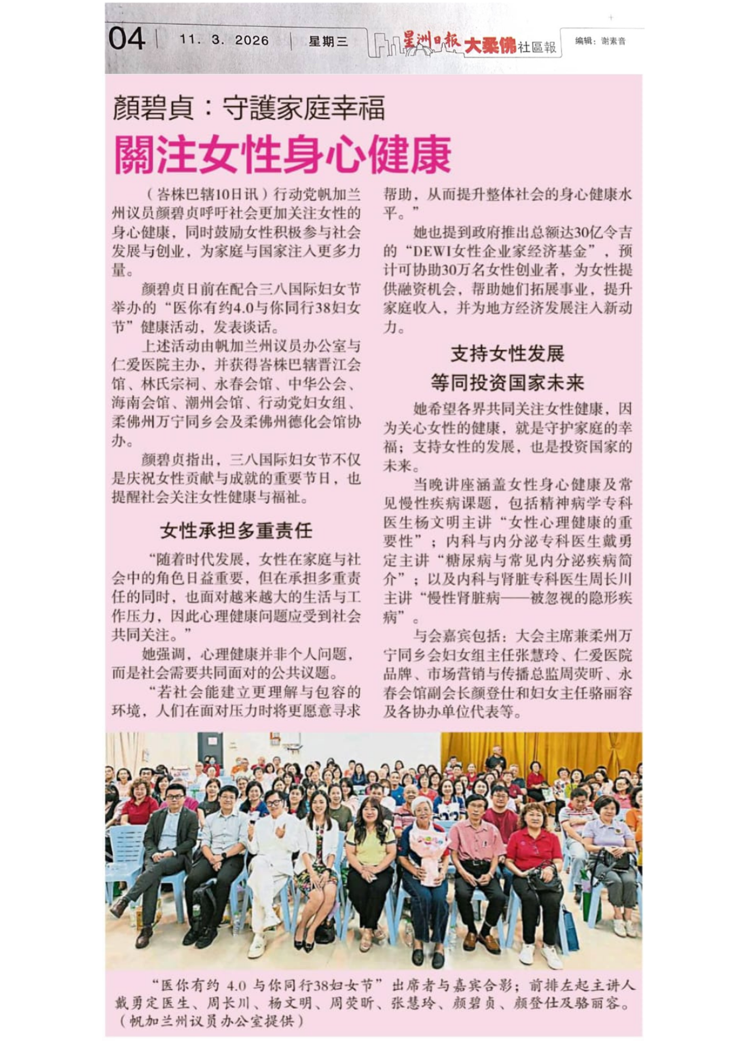 YB Gan Peck Cheng highlighted that International Women’s Day is not only a celebration of women’s achievements and contributions, but also an important reminder for society to pay greater attention to women’s health and overall well-being.