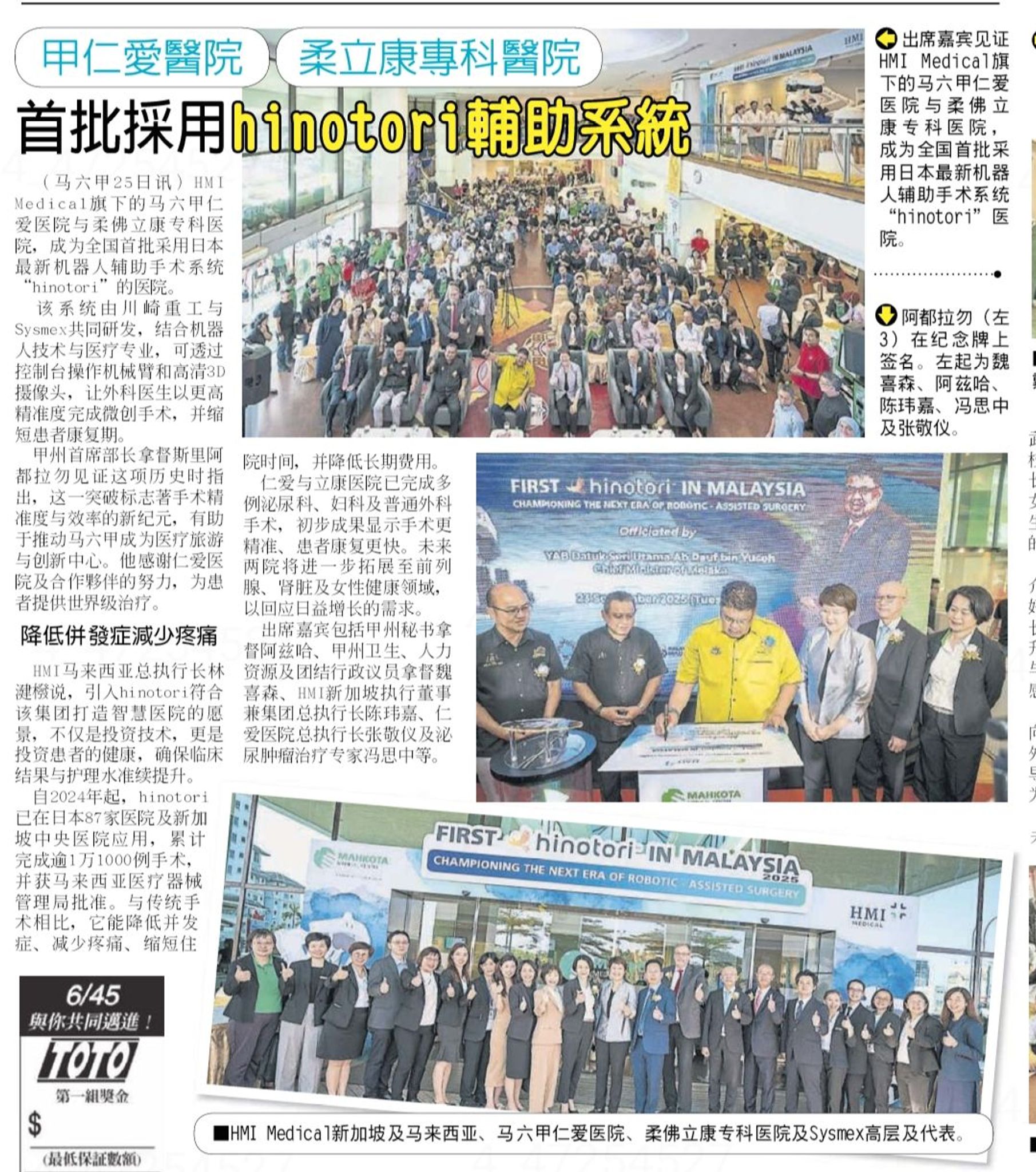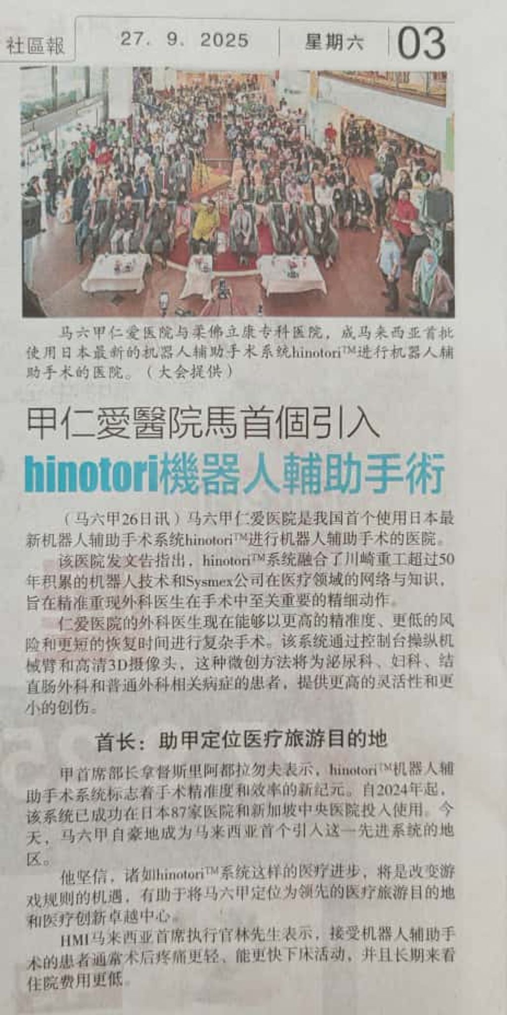 “The Hinotori Robotic-Assisted Surgical System marks a new era in surgical precision and efficiency. It has been successfully implemented in 87 hospitals in Japan and Singapore General Hospital since 2024. Today, Melaka proudly becomes the first in Malaysia to introduce this advanced system. I strongly believe that advancements in healthcare, such as the Hinotori™ System will be a game-changing opportunity to position Melaka as a leading medical tourism destination and a centre of excellence in healthcare innovation. This remarkable journey would not have been possible without the dedication, expertise and hard work of Mahkota Medical Centre and HMI Medical, its healthcare team and all partners such as Sysmex who have brought this vision to life and meet the growing demands of modern healthcare while offering world-class treatment to both local and international patients.”